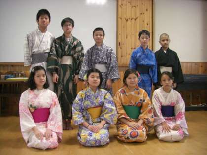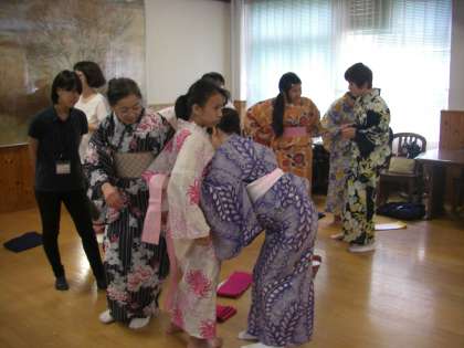 家庭科の授業で「和装教室」を行いました。ゆかたの着付け体験ということで,一人ひとり貴重な経験をしました。とても楽しそうでした。