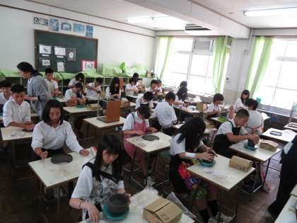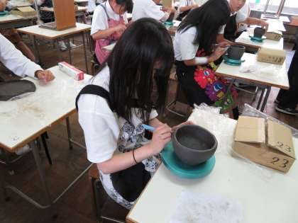 2年美術の授業では「陶芸」に取り組んでいます。手びねりやひもづくりで湯飲みや皿・お椀等一人一人が考えながら制作しています。完成が楽しみです。