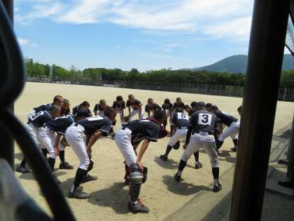 野球部は14日勧修寺グランドで新人戦優勝校下京中と対戦しました。得点のチャンスはありましたがつながらず残念ながら敗れました。野球部の夏は終わりましたが、学校では他の部をひっぱる素晴らしい存在でした。よき伝統を後輩たちは継いでくれると思います。野球部の健闘に拍手をおくります。
