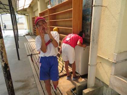 冷水機には、次から次に生徒が訪れます。しっかり水分補給してください。