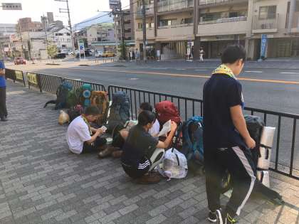 今年の栗陵ワンダーフォーゲル部は長野県の蝶ヶ岳を目指します。神川中、西陵中、双ヶ丘中、嵯峨中、藤森中と合同で3泊4日のテント泊です。普段の練習の成果を発揮して、チームで楽しんできたいと思います。先ほど醍醐支所前から出発しました。