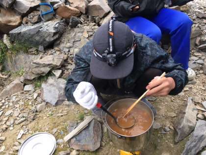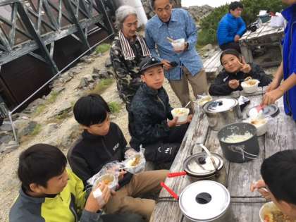 昨夜の食事はカレーライスでした。標高が高いので鍋の温度が上がらず、ニンジンに全然火が通りませんでした。が、みんなで1.5升のご飯を完食!