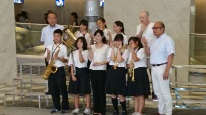 演奏後は緊張からかいほうされ笑顔で写真撮影でした。保護者のみなさん、猛暑の中遠いところまでお越しいただきありがとうございました。