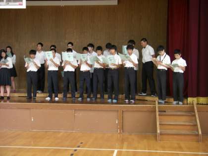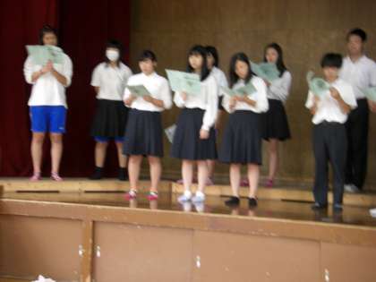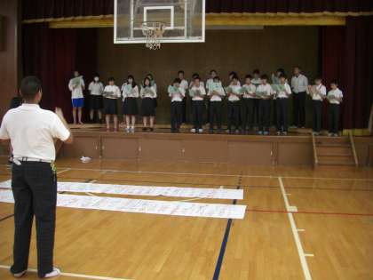 3年5組の練習風景です。体育館での練習でした。3年生らしくしっかりと歌えていました。あと2週間でどこまでレベルアップできるかとても楽しみです。