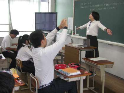 3年4組の実習生の先生の研究授業の様子です。楽しい授業というのがよく伝わってきますね。最後の英語の授業でした。