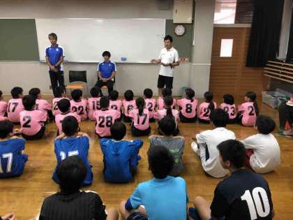 9月15日(土)に元Jリーガーの方を二名招いてのサッカー教室が本校グラント゛で行いました。本校以外に中学校2校と醍醐サッカースポーツ少年団のメンバーも一緒に参加しました。有意義な時間を過ごせたと思います。