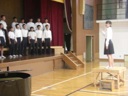 2年生は6時間目に合唱コンクールのリハーサルを体育館で行いました。隊形や移動練習など当日を想定して,一通り練習しました。