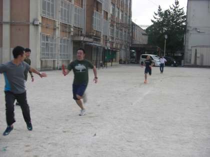 体育祭は10日(水)に延期されました。が,しかし,先生たちは真剣にリレーの練習をしています。