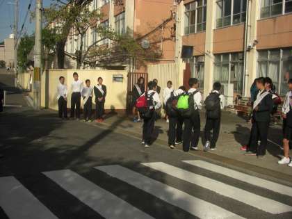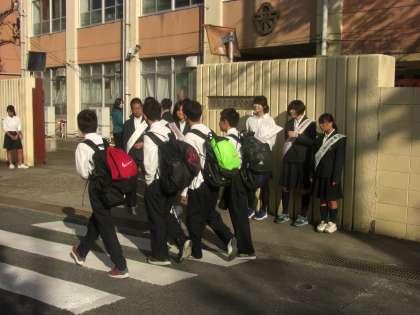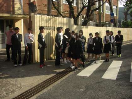 登校してくる生徒に,「おはようございます」と元気な声であいさつしていました。この朝のあいさつは,選挙当日の26日(金)まで中間テストの日を除いて行われます。