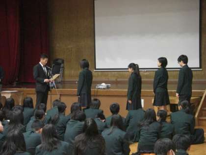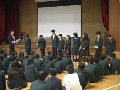 伝達表彰の様子です。2学期,みなさんは様々な場面で活躍しました。よくがんばりました。これからも期待しています。