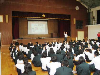 6時間目体育館において、携帯会社より講師の方に来ていただき、1・2年生を対象に「ケータイ教室」を実施しました。