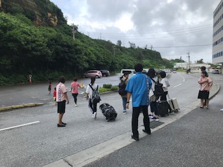 民泊体験入村式があり,それぞれの民家の方と対面しました。民泊体験開始です。美ら海水族館へも行く予定です。