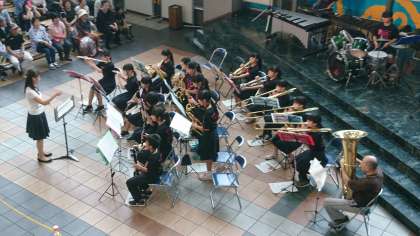 七夕の7日、恒例の伏見保護司会主催「社会を明るくする運動」の一環として醍醐地域4中学校による吹奏楽部のミニコンサートがダイゴローで開催されました。保護者や地域の皆さんの前でアンコール曲を入れて6曲演奏しました。毎年、子どもたちに演奏の機会を与えていただきありがとうございます。