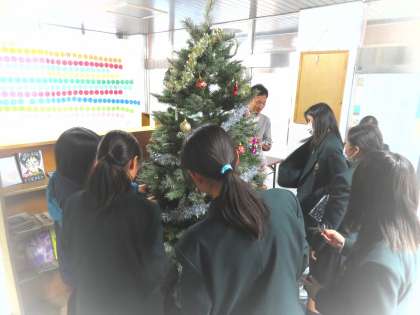 早いもので明後日からは12月になります。昼休みに職員室前にクリスマスツリーを飾りました。通りがかった2・3年生が楽しそうに手伝ってくれました。心の温かい生徒を誇りに思います。ありがとう。