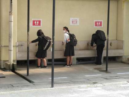 今週から「教育活動再開に向けた準備」期間となり,今日は2組の「学習相談日」で3分の2の生徒が久しぶりに登校しました。みんなマスクを着用し,手洗い後持参したハンカチで手を拭いていました。教室では少し緊張していたようですが登下校時は笑顔で友達と話す姿が見られました。6月の再開に向けて少しずつ新しい学校生活に慣らしていきましょう。