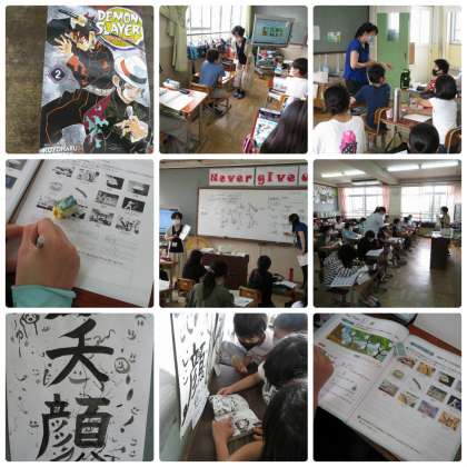 先週から,校区3小学校で小中一貫英語授業が始まりました。今日は,池田小学校で行われました。6年生の2クラスともに積極的に授業を受けています。特に盛り上がったのは「鬼滅の刃」の英語版を紹介された時でした。外国人や海外でも人気があるそうです。英語を学ぶ楽しさを通して英語に興味を持ち学習に向かってください。