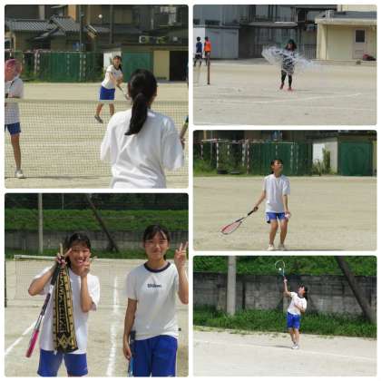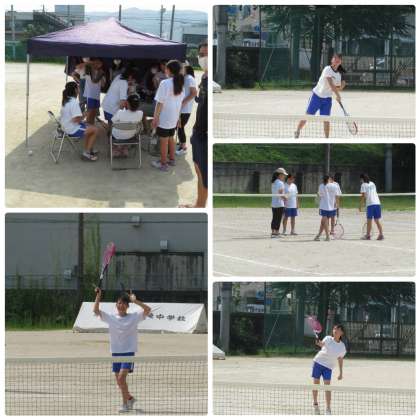 女子テニス部3年生2名が今日の練習で引退しました。1年前の夏から新チームがスタートし2名で下級生をまとめるのは苦労があったと思います。さらに,3月の臨時休業以来,春体・夏季大会が中止になり,大きな目標を失い,何を目標としていつまで部活動を続けるのか悩み,二人で支えながら今日の日を迎えたことでしょう。よくがんばりました。これからも二人のきずなは深めてほしいと思います。