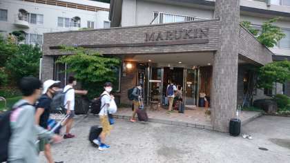 ラフティングを楽しんだ3年生は,各クラス共宿舎に到着しました。この後,入浴,夕食,クラスレクリエーションがあります。