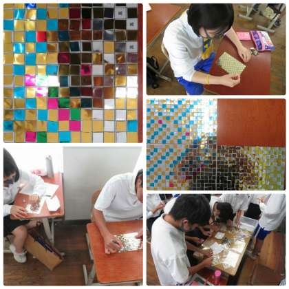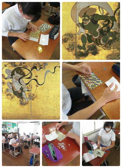 25日(金)の「文化の部」に向けて取り組みが行われています。3年生は全校展示のモザイクアート(風神雷神)を作成中です。2年生は,「プロモーションビデオ「365日の紙飛行機 栗陵2年バージョン」の取り組んでいます。今年はコロナ禍でオンラインの「文化の部」ですが,いつもとは違うところも楽しみながらみんなで作り上げましょう。完成を楽しみにしています。