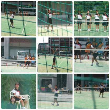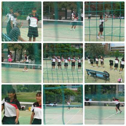 19日(土)の陸上部を皮切りに「新人大会」が始まりました。女子テニス部は団体戦の予選リーグ戦が行われ,蜂ヶ岡中・藤森中・強豪光華中の3校と対戦し,3ペア6人の部員が緊張しながらもがんばりましたが,残念ながら敗れました。来週は,個人戦の予選が行われます。この経験を次に活かしてください。陸上部の大会の様子は,明日掲載します。