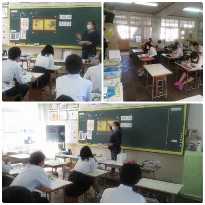 朝晩すごしやすい気候になりましたが今日から10月です。昨日は,学校祭体育の部で活躍した生徒たち,今日は学習に励んでいます。「芸術の秋」にふさわしく3年美術と2年音楽の授業の様子を紹介します。