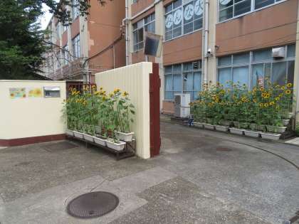 350のひまわりが次々に咲き始め学校の雰囲気が明るく感じられます。今週末には満開になりそうです。懇談会に来校される保護者の皆様もごらんください。