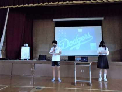 3年生の学年集会の様子です。各クラスの1学期のまとめを代表委員から,修学旅行にむけて修学旅行委員会から,それぞれ発表がありました。