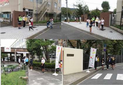毎月1日は生徒会の「スマイリッツデー」。そして3小1中合同あいさつ運動の日です。今日から緊急事態宣言も解除され,あいさつ運動を再開しました。画像は,池田小・栗陵中校門前ですが,池田小では児童たちが英語であいさつをかわしていたこともあり中学生も英語であいさつ,昼休みの放送では,各種委員会から,委員会強化週間のまとめの報告がありました。
