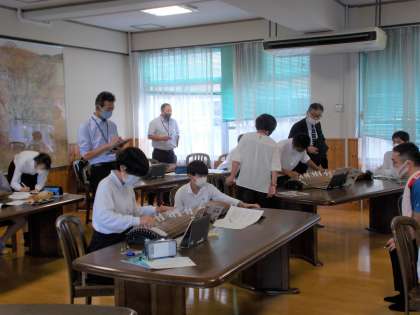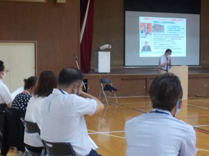 授業の様子を参観していただいたあと,体育館ですべての生徒を支えるために学校のユニバーサルデザイン化を推進するにはどのように取り組んでいけばよいかといことについてお話いただきました。