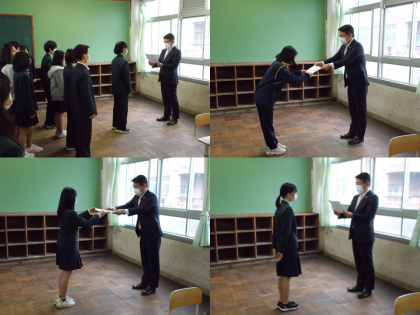 本日Zoom配信の形式となりましたが,令和3年度「修了式」を行いました。30名を超える伝達表彰の後,校長先生から,卒業した3年生がとても立派な姿で巣立って行ったこと,1,2年生についてもコロナ禍で制限のある中,1年間よく頑張ったというお褒めの言葉いただきました。そのあと,代表生徒による「1年間を振り返って」の発表を行いました。生徒会本部からは,これまでの生徒会活動への協力のお礼と今後に向けてのお話がありました。式の後,スクールカウンセラーの先生から「新しい春を迎えるみなさんへ」と題して,困ったときに人に相談することの大切さや,簡単にできるリラックスの方法などを教えていただきました。