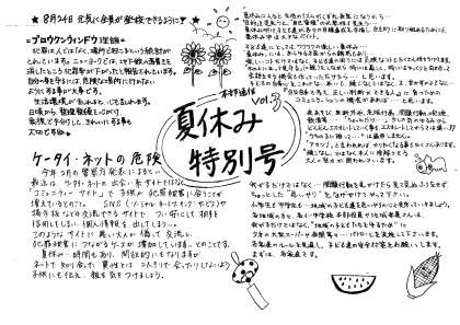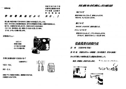 7月17日にお子達を通じて配布いたします,PTA本部通信と学年委員会だよりです。