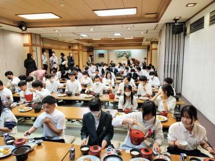 夕食は、前を向いて黙食です。