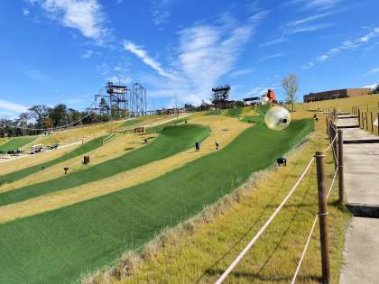 丸いビニールのボールの中に入り、坂を一気に下ります!