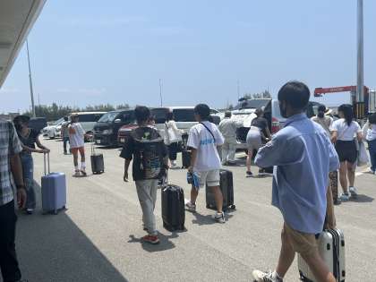 これから、各民家さんの家に行って昼食をとります。そのあと、ビーチレクです。良い天気でよかったです。