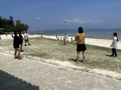 足だけ水につけたり、泳いだり、ビーチバレーをしたり、、それぞれが沖縄の海を楽しみました。
