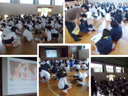 1年生は、昨日の6限体育館で「ケータイ教室」を行いました。