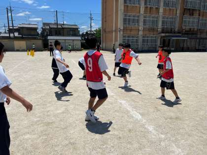 1年生は、男子はサッカー、女子はバレーボールを行いました。