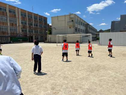 グラウンドを大きく使い、日差しもきつくなってきましたが、