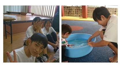 一緒に水遊びをして、着替えの手伝いをして