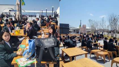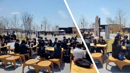 後ろには見覚えのある回転ずしチェーンのお店があります。