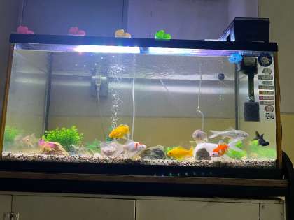 また、これまで玄関にあった金魚の水槽は階段横に移動しましたが、校長先生がライトをつけて下さり、こちらもリニューアルしました!