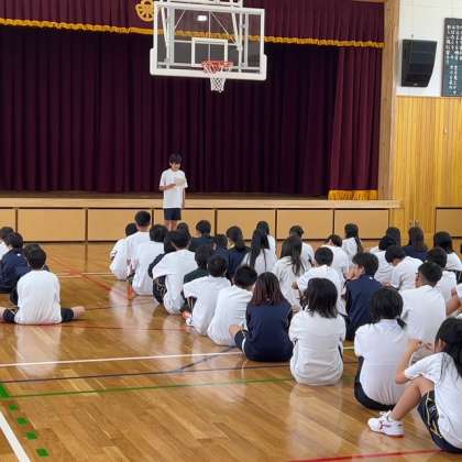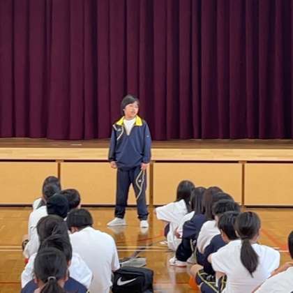 集会では、学年・クラスの良かったところや頑張っていたころを紹介し合い、