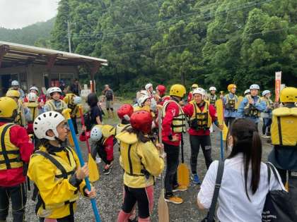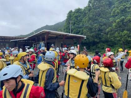 シャイニングフィールドに到着しました。ウェットスーツに着替えてラフティング体験です。