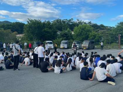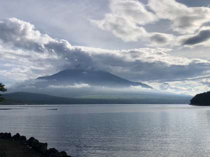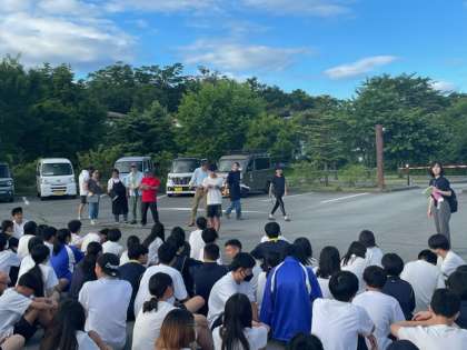 山中湖周辺は嘘の様に曇り空が晴れました。入村式の様子です。この後ペンション毎に別れます。