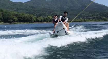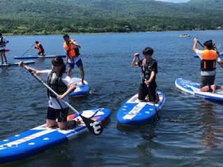 体験の様子です。湖岸からは見えない所まで行って大自然を楽しんでいます。