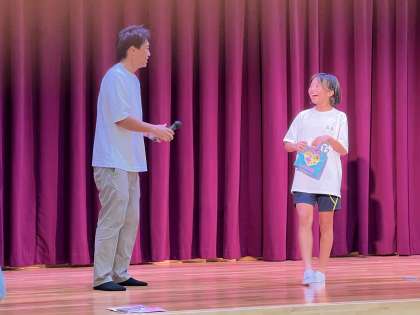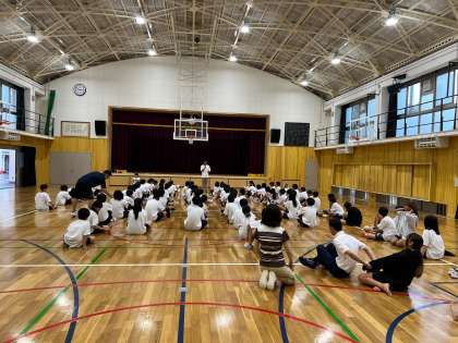 学年全員でじゃんけん大会を行い、写真を撮っていました。