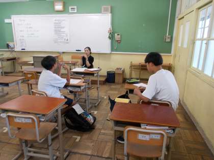 ノート作りをしている人、友だちと問題を出しあったりしている人、