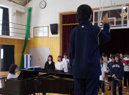指揮者、伴奏者のもと、元気に歌っていました。
