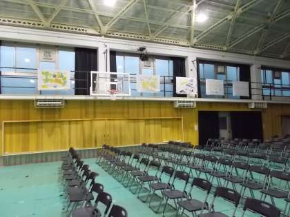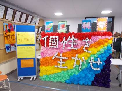 体育館の学級イラストや、各教科、部活動の展示が校舎に展示されました。