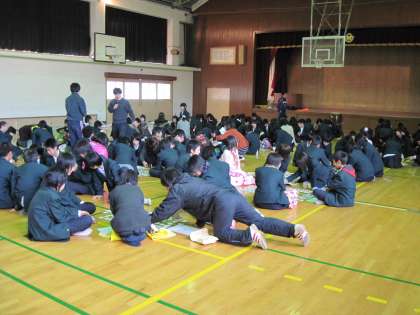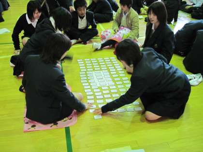 1月18日の午後,2年生の百人一首大会が始まりました。さて,どのクラスが一番多く札を取るでしょうか?